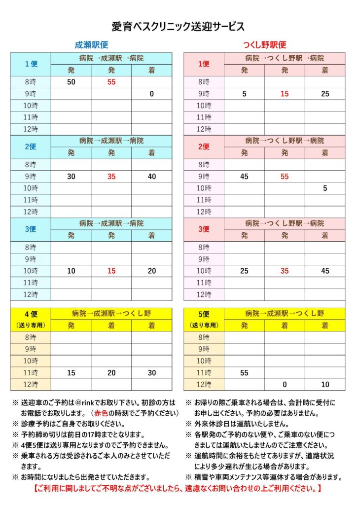 患者様の利便性向上のため、JR成瀬駅および東急田園都市線つくし野駅と当院を結ぶ無料送迎(定期便)を、11月26日(水)より開始いたします。